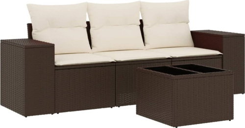 vidaXL 4-cz zestaw wypoczynkowy do ogrodu, poduszki, brązowy rattan PE