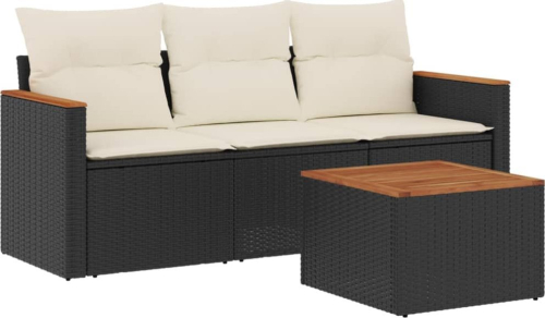 vidaXL 4-cz. zestaw wypoczynkowy do ogrodu, poduszki, czarny rattan PE