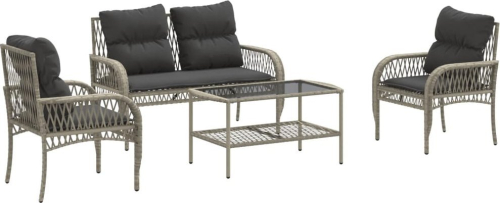 vidaXL 4-cz. zestaw wypoczynkowy do ogrodu, poduszki, jasnoszary
