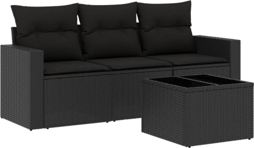 vidaXL 4-częściowy zestaw wypoczynkowy do ogrodu, poduszki, czarny rattan PE