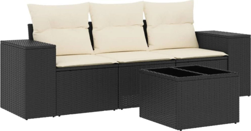 vidaXL 4-częściowy zestaw wypoczynkowy do ogrodu, poduszki, czarny rattan PE