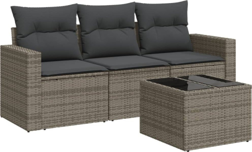 vidaXL 4-częściowy zestaw wypoczynkowy do ogrodu, poduszki, szary, rattan PE