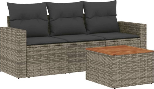 vidaXL 4-częsciowy zestaw wypoczynkowy do ogrodu, poduszki, szary, rattan PE