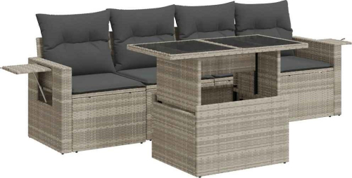 vidaXL 5-cz. zestaw mebli do ogrodu, poduszki, jasnoszary rattan PE