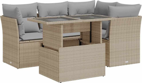 vidaXL 5-cz. zestaw mebli ogrodowych z poduszkami, beżowy, polirattan
