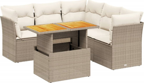 vidaXL 5-cz. zestaw mebli ogrodowych z poduszkami, beżowy, polirattan