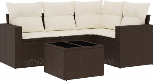 vidaXL 5-cz. zestaw mebli ogrodowych z poduszkami, brązowy, polirattan