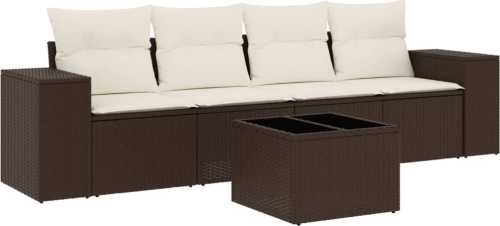 vidaXL 5-cz. zestaw mebli ogrodowych z poduszkami, brązowy, polirattan
