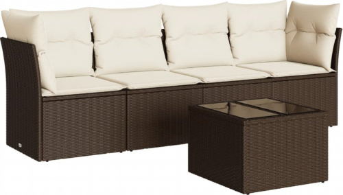 vidaXL 5-cz. zestaw mebli ogrodowych z poduszkami, brązowy, polirattan