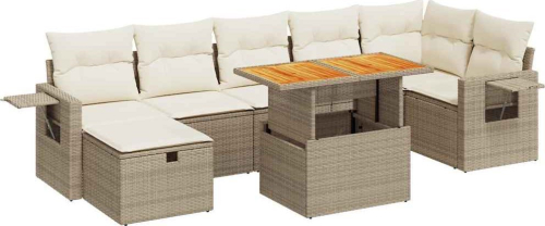vidaXL 5-cz. zestaw mebli z poduszkami, beżowy, rattan PE i akacja
