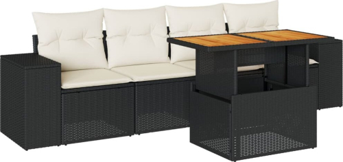 vidaXL 5-cz. zestaw wypoczynkowy do ogrodu, poduszki, czarny rattan PE