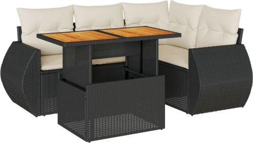 vidaXL 5-cz. zestaw wypoczynkowy do ogrodu, poduszki, czarny rattan PE