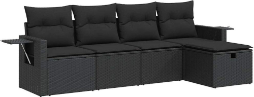 vidaXL 5-cz. zestaw wypoczynkowy do ogrodu, poduszki, czarny rattan PE