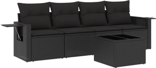 vidaXL 5-cz. zestaw wypoczynkowy do ogrodu, poduszki, czarny rattan PE