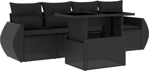 vidaXL 5-cz. zestaw wypoczynkowy do ogrodu, poduszki, czarny rattan PE