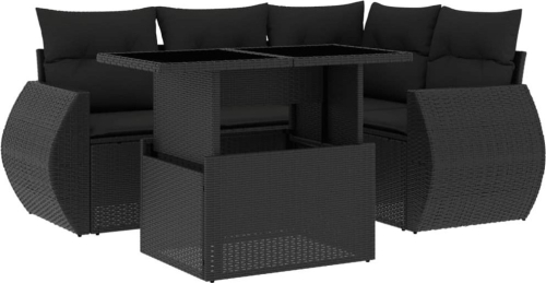 vidaXL 5-cz. zestaw wypoczynkowy do ogrodu, poduszki, czarny rattan PE
