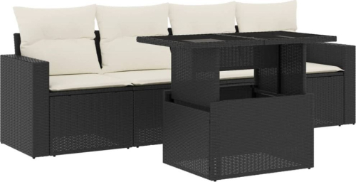 vidaXL 5-cz. zestaw wypoczynkowy do ogrodu, poduszki, czarny rattan PE