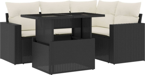 vidaXL 5-cz. zestaw wypoczynkowy do ogrodu, poduszki, czarny rattan PE