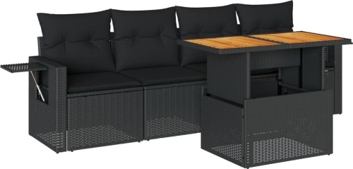 vidaXL 5-cz. zestaw wypoczynkowy do ogrodu, poduszki, czarny rattan PE
