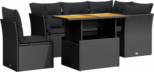 vidaXL 5-cz. zestaw wypoczynkowy do ogrodu, poduszki, czarny rattan PE