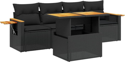 vidaXL 5-cz. zestaw wypoczynkowy do ogrodu, poduszki, czarny rattan PE