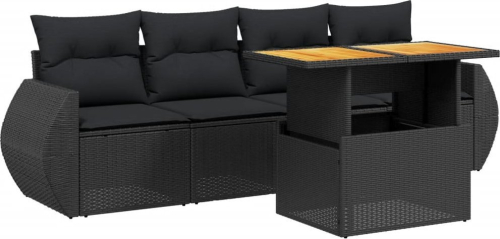 vidaXL 5-cz. zestaw wypoczynkowy do ogrodu, poduszki, czarny rattan PE