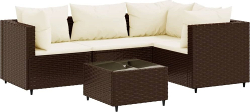vidaXL 5-cz. zestaw wypoczynkowy do ogrodu, poduszki, polirattan, brąz