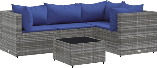 vidaXL 5-cz. zestaw wypoczynkowy do ogrodu, poduszki, szary, rattan PE