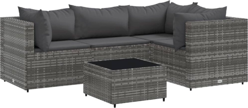vidaXL 5-cz. zestaw wypoczynkowy do ogrodu, poduszki, szary, rattan PE