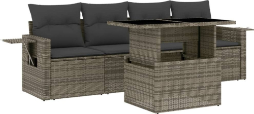 vidaXL 5-cz. zestaw wypoczynkowy do ogrodu, poduszki, szary rattan PE