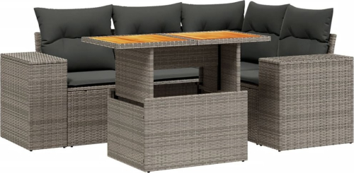 vidaXL 5-cz. zestaw wypoczynkowy do ogrodu, poduszki, szary rattan PE