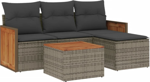 vidaXL 5-cz. zestaw wypoczynkowy do ogrodu, poduszki, szary rattan PE