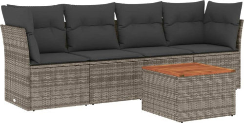 vidaXL 5-cz. zestaw wypoczynkowy do ogrodu, poduszki, szary rattan PE