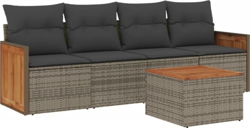 vidaXL 5-cz. zestaw wypoczynkowy do ogrodu, poduszki, szary rattan PE