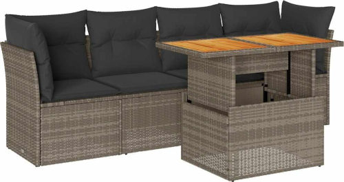 vidaXL 5-cz. zestaw wypoczynkowy do ogrodu, poduszki, szary rattan PE