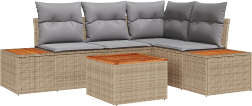 vidaXL 5-częściowy zestaw sof ogrodowych z poduszkami beżowy polirattan akacja