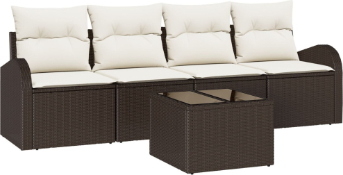 vidaXL 5-częściowy zestaw sof ogrodowych z poduszkami Brązowy Poli Rattan
