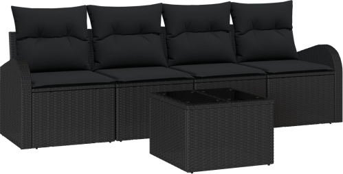 vidaXL 5-częściowy zestaw sof ogrodowych z poduszkami Czarny Polirattan