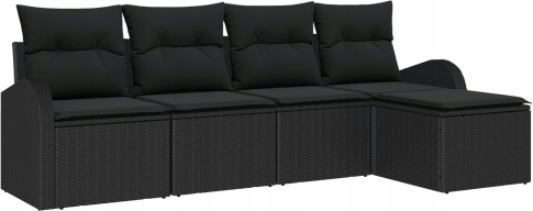 vidaXL 5-częściowy Zestaw Sof Ogrodowych z Poduszkami Czarny Polirattan