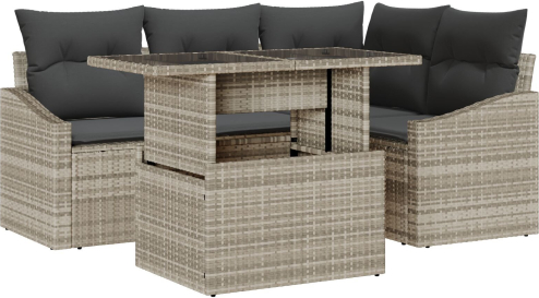 vidaXL 5-częściowy zestaw sof ogrodowych z poduszkami jasno szary polirattan