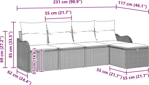 Vidaxl 5-częściowy zestaw sof ogrodowych z poduszkami Jasnoszary polirattan