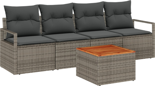 vidaXL 5 Częściowy Zestaw Sof Ogrodowych z Poduszkami Szary Poli Rattan Akacja