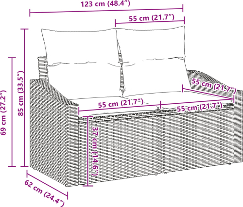 vidaXL 5-częściowy Zestaw Sofy Ogrodowej z Poduszkami Brązowy Polirattan