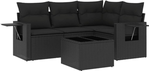 vidaXL 5-częściowy zestaw wypoczynkowy do ogrodu, poduszki, czarny rattan PE