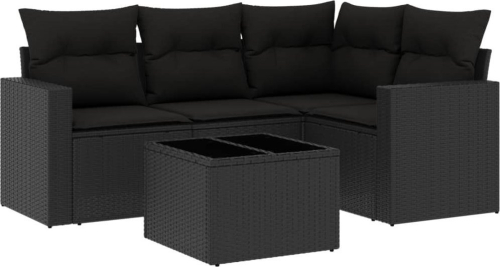 vidaXL 5-częściowy zestaw wypoczynkowy do ogrodu, poduszki, czarny rattan PE