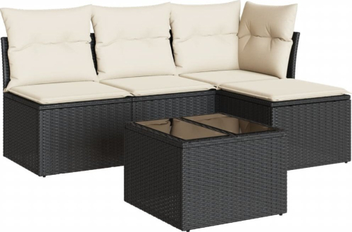 vidaXL 5-częściowy zestaw wypoczynkowy do ogrodu, poduszki, czarny rattan PE