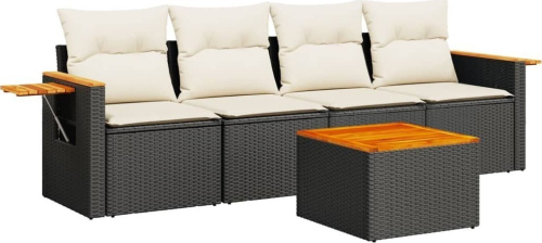 vidaXL 5-częściowy zestaw wypoczynkowy do ogrodu, poduszki, czarny rattan PE