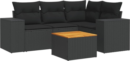 vidaXL 5-częściowy zestaw wypoczynkowy do ogrodu, poduszki, czarny rattan PE