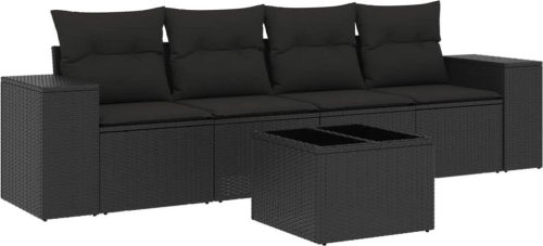 vidaXL 5-częściowy zestaw wypoczynkowy do ogrodu, poduszki, czarny rattan PE