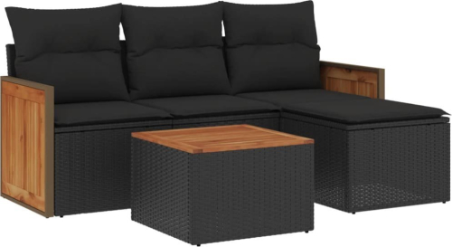 vidaXL 5-częsciowy zestaw wypoczynkowy do ogrodu, poduszki, czarny rattan PE